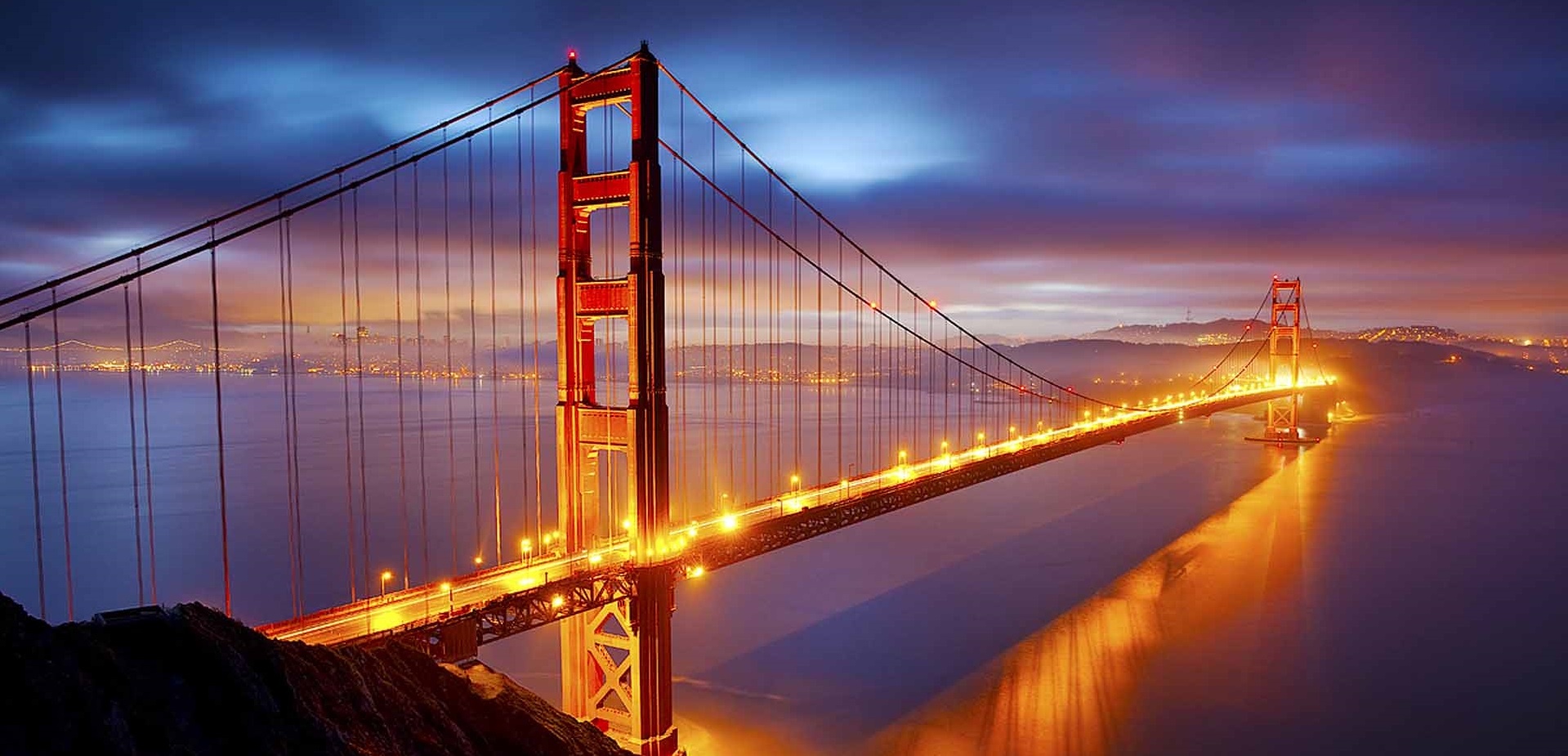 - Du khách có thể đi ô tô, xe đạp hay đi bộ qua lại giữa San Francisco và vùng Marin County nhờ cây Cầu Cổng Vàng dài đến 1,7 dặm (2.736 mét) này.