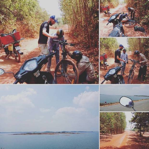 Sáng hôm sau, 3 anh em đi ăn sáng xong thì Pedro đòi độc hành đạp xe tới Nam Cát Tiên. Em và a Hiếu cản quài không được. Thôi thì kệ, giúp hắn mua nước xong rồi tiễn hắn đi :)) Tầm 1 tiếng sau em đang nằm phè phỡn trên võng thì thấy Pedro gọi về cho Mr.Hiếu bảo mới đi đc cách nhà 12km mà xe bị đứt xích, “Tao không mạo hiểm đi Nam Cát Tiên với cái xích thế này được, tao phải quay lại thôi”.