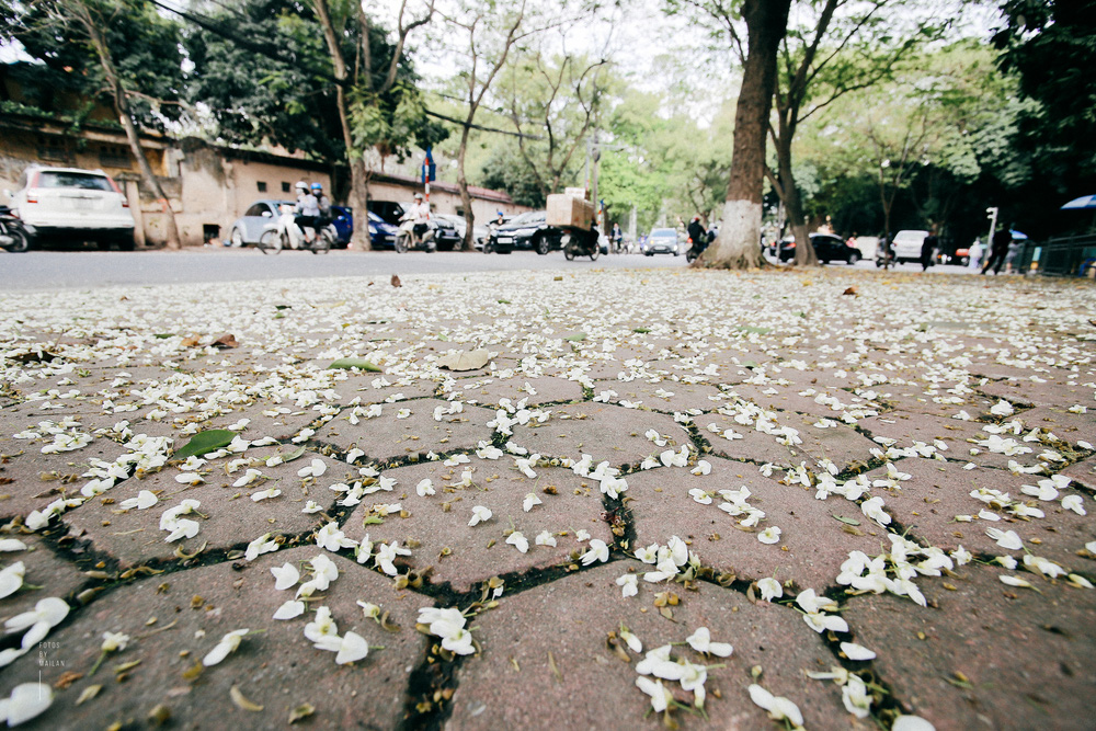 Không phải là hoa sấu li ti phủ kín những vỉa hè, không phải hoa sen thơm ngát hồ Tây, cũng không phải hoa cúc vàng dịu dàng trong nắng ấm. Tháng ba về, tháng của mùa hoa sưa trắng muốt lấm tấm trên nền trời xanh biếc. Những bông hoa nhỏ li ti nở trắng trời khiến cho thủ đô bỗng trở nên dịu dàng như một cô thôn nữ. Mỗi cơn gió đi qua, từng đợt hoa sưa nhẹ nhàng rơi xuống, cuốn theo chân người rong ruổi khắp phố xa...